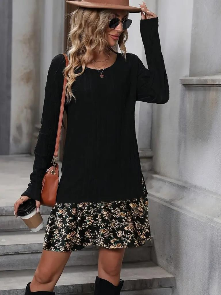 Kadın Uzun Kollu Bisiklet Yaka şardonlu Kaşkorse Bluz Ve Süprem Etek Elbise